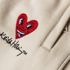 Comfort meets creativity in the Shoe Palace x Keith Haring “Respect” Sweatpants. Featuring Haring’s iconic heart and “LOVE” graphics, these cream fleece pants bring timeless art to modern streetwear. Designed for everyday wear, they offer a relaxed fit, soft fleece interior, and bold details that celebrate self-expression.